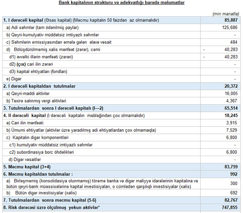 30 İyun 2021-ci il tarixində 82 milyon 767 min manat məcmu kapitala malik olub, bu da minimal tələbdən (50 milyon manat) yüksəkdir.