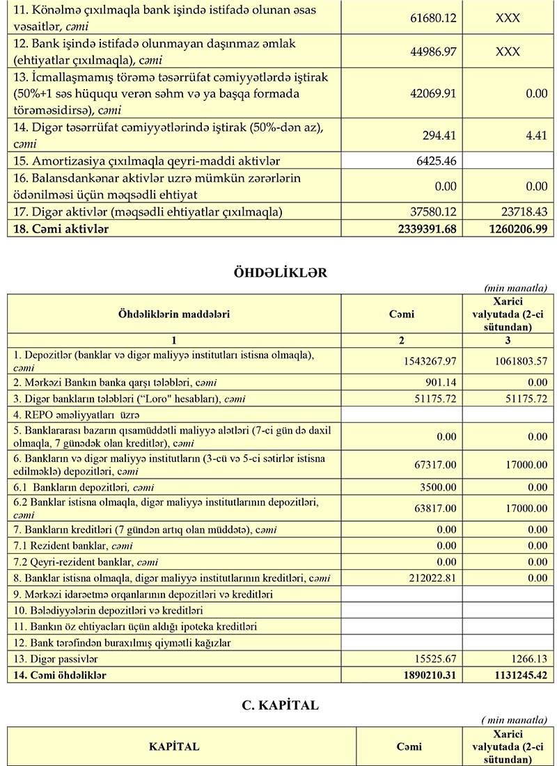 AKTİVLƏRİ 2,3 MİLYARD MANATDAN ÇOXDUR