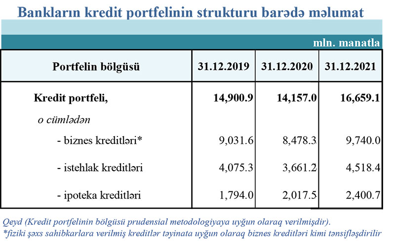 31 dekabr 2021-ci il tarixinə olan bank sektorunun əsas göstəriciləri açıqlanıb.