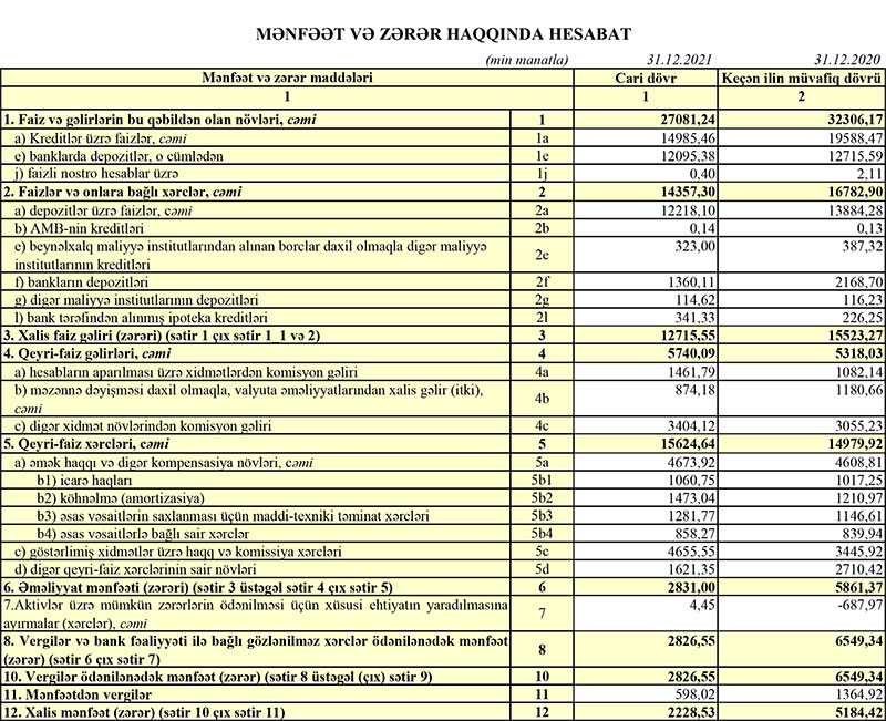 “Azərbaycan Sənaye Bankı” ASC 2021-ci il üzrə maliyyə göstəricilərini açıqlayıb.