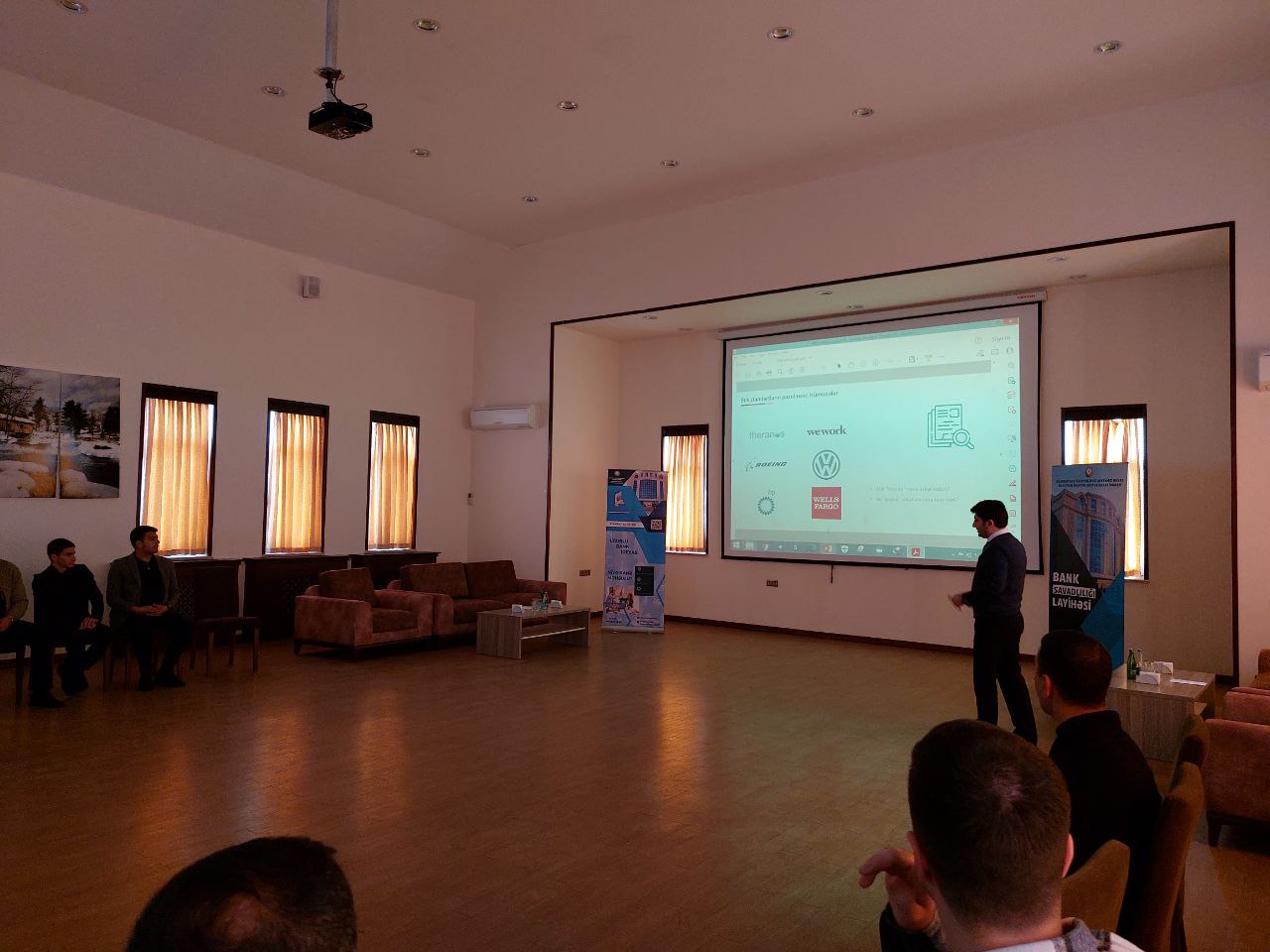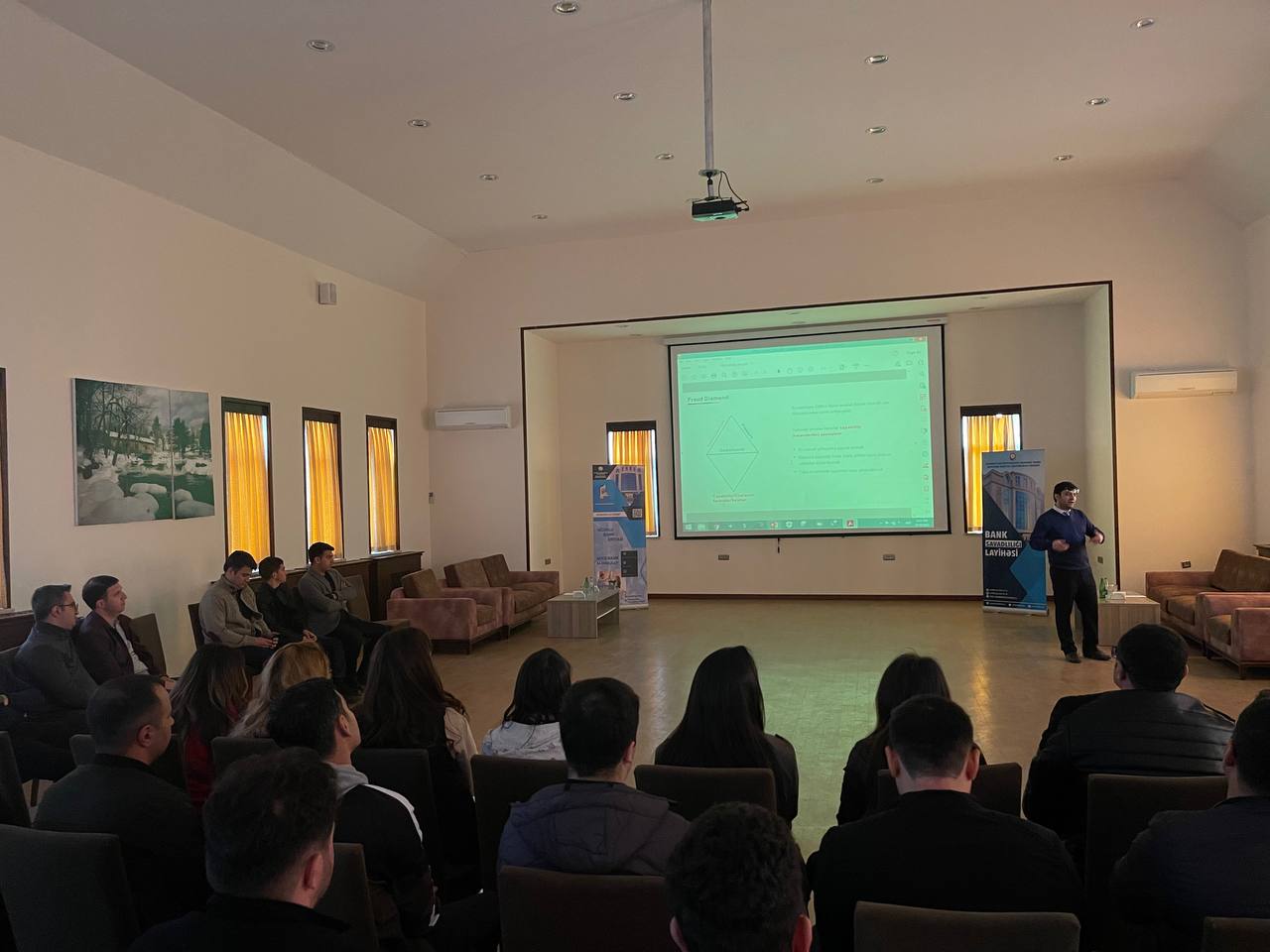 Tədbir zamanı ilkin olaraq “International Consulting Company”-nin direktoru Ramin Bayramov “Müasir bank məhsulları və xidmətləri” mövzusunda məlumat verərək bildirmişdir ki, hazırda banklar tərəfindən aktiv, passiv və vasitəçilik olmaqla müxtəlif əməliyyatlar həyata keçirilir və pərakəndə bank xidmətləri sürətlə inkişaf edir. Əhaliyə bank məhsulları internet-bank, sms-bank, mobil-bank, avtomatlaşdırılmış bank köşkləri kimi ən müasir texnoloji vasitələrlə təklif edilir. O, bank sisteminin regional şəbəkəsinin və maliyyə xidmətlərinə çıxış imkanlarının daha sürətlə genişləndiyindən, digər tərəfdən banklar beynəlxalq maliyyə bazarlarında aktiv fəaliyyətə başladığından bank sisteminin bütün istiqamətləri üzrə həyata keçirilən islahatlar və institusional inkişaf nəticəsində bank sektorunda kəmiyyət və keyfiyyət dəyişikliklərinin baş verdiyini qeyd etmişdir. Bunun nəticəsi olaraq bank sektorunda maliyyə sabitliyi parametrlərinə, risk menecment təcrübəsinə və xidmət şəbəkəsinə görə beynəlxalq standartlara tam uyğun bank sistemi formalaşdığını vurğulamışdır.