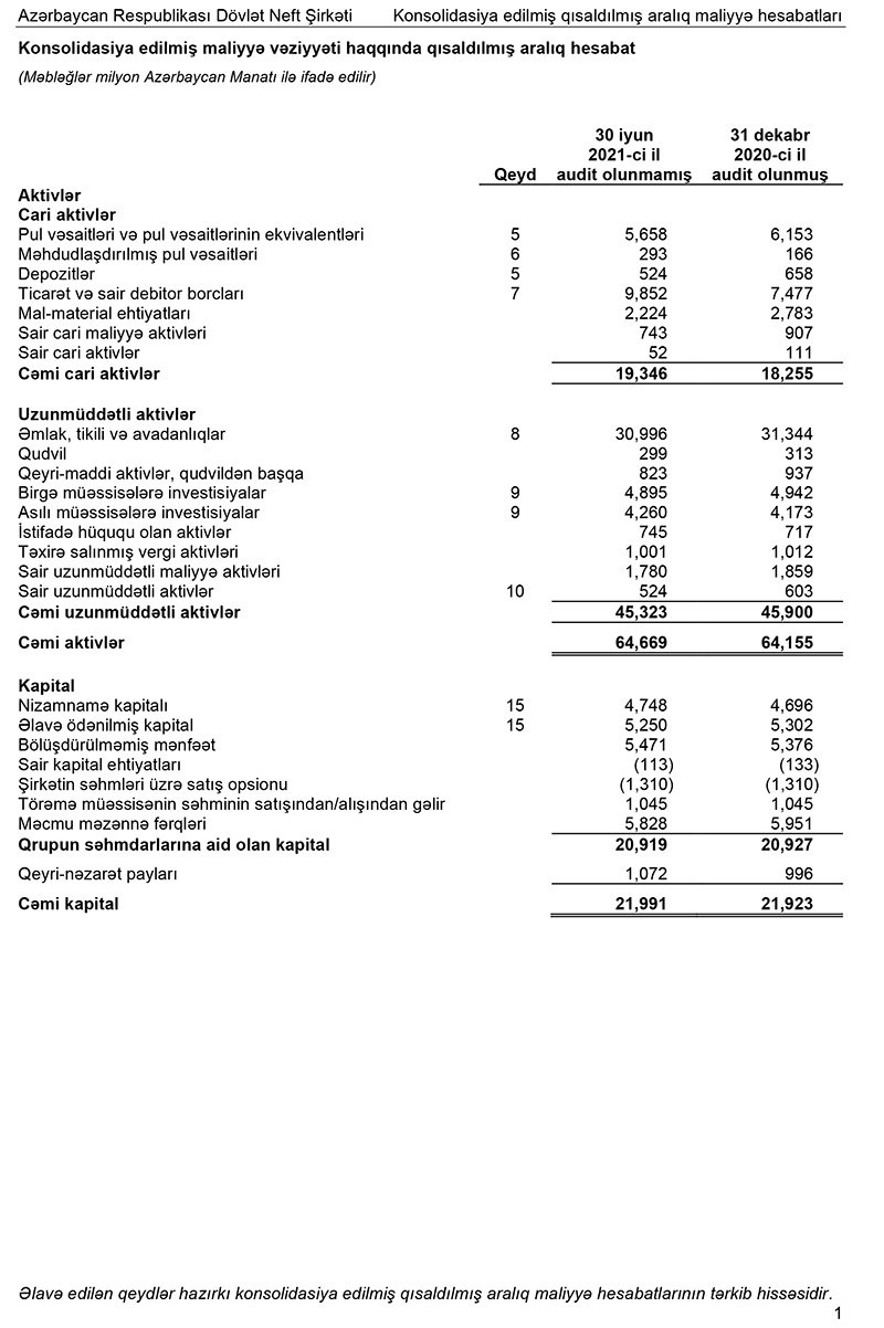 30 iyun 2021-ci il tarixində SOCAR 64 milyard 669 milyon manat cəmi aktivlərə malik olub.