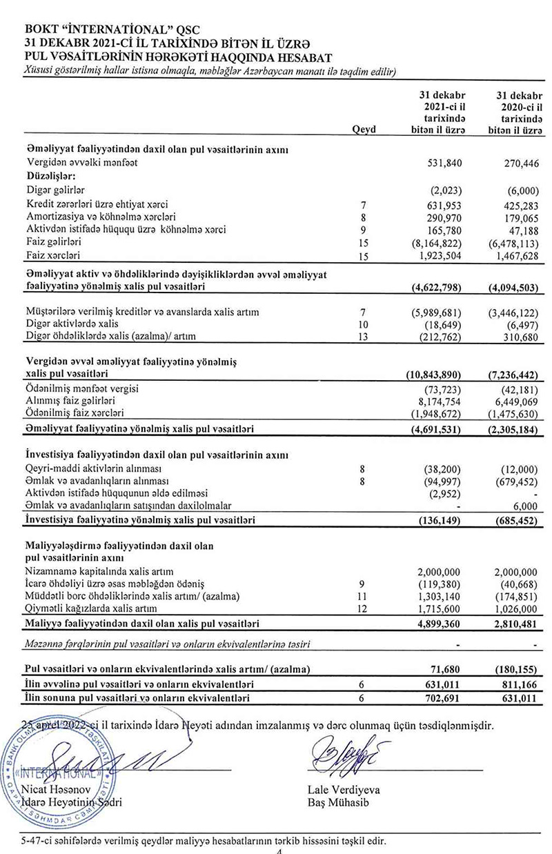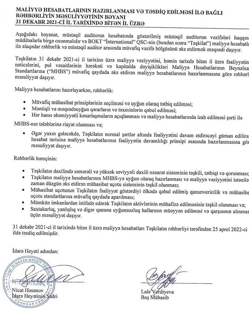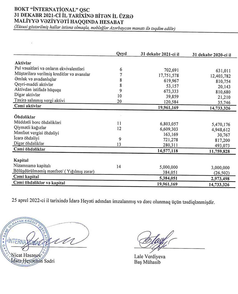 BOKT "İnternational" QSC-nin kredit portfeli (müştərilərə verilmiş kreditlər) 2020-ci illə müqayisədə 2021-ci ildə 5 milyon 348 min manat və ya 43,1% artaraq 17 milyon 752 min manata çatıb.