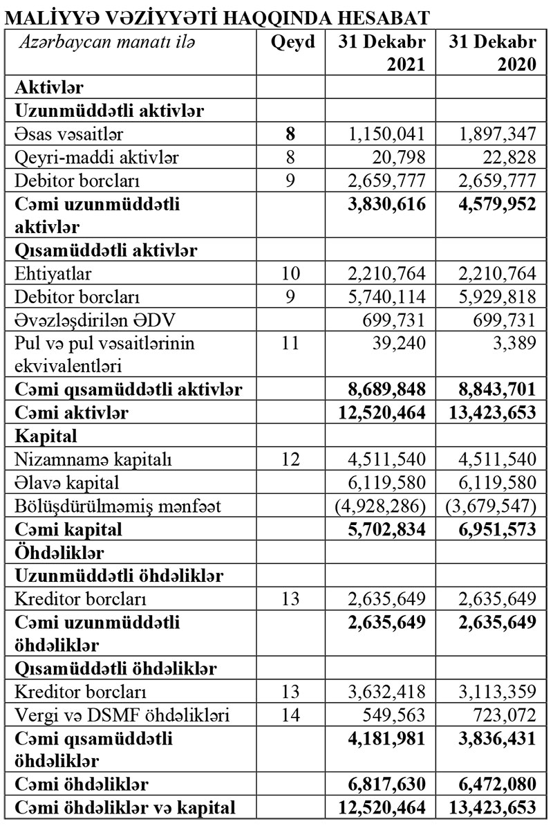 “Baku Steel Construction” şirkətinin maliyyə vəziyyəti açıqlanıb