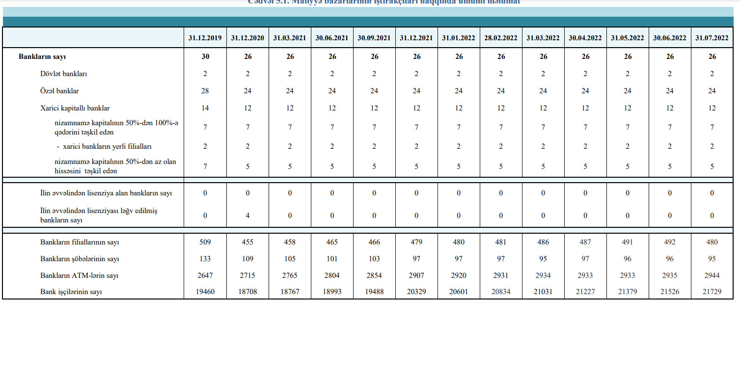 2022-ci ilin iyul ayında Azərbaycanda 12 bank filialı bağlanıb.