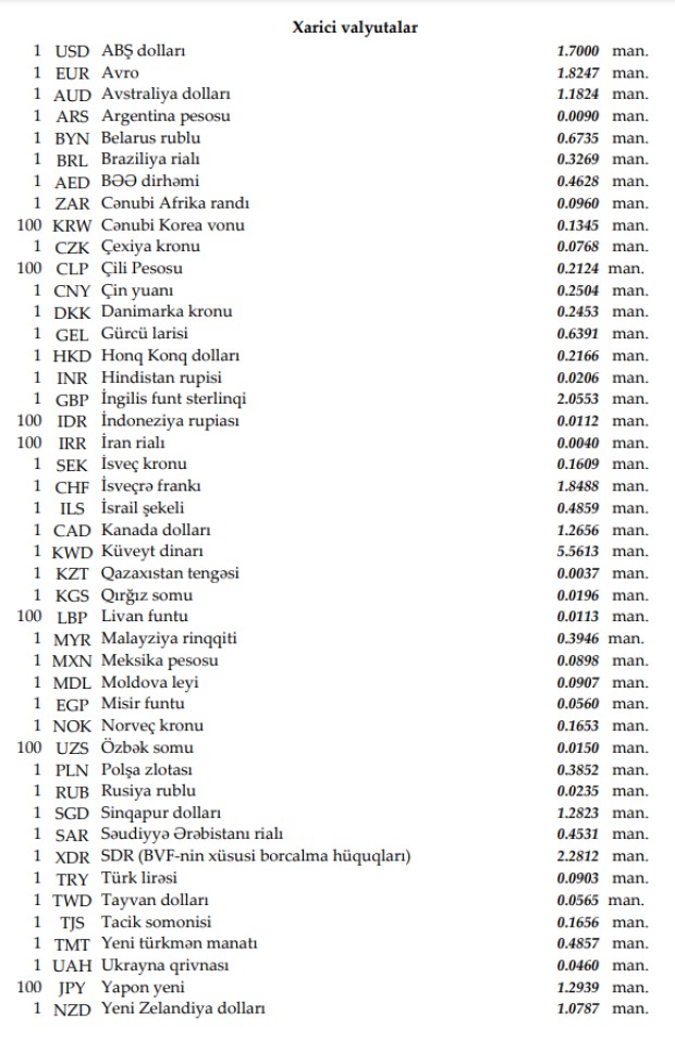 Rəsmi məzənnələr açıqlandı