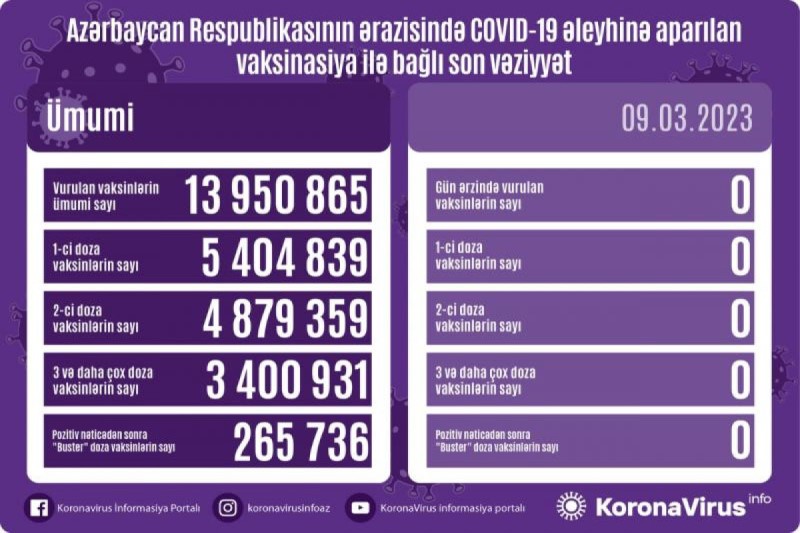 Azərbaycanda son sutkada koronavirus (COVID-19) əleyhinə vaksin vurulmayıb.