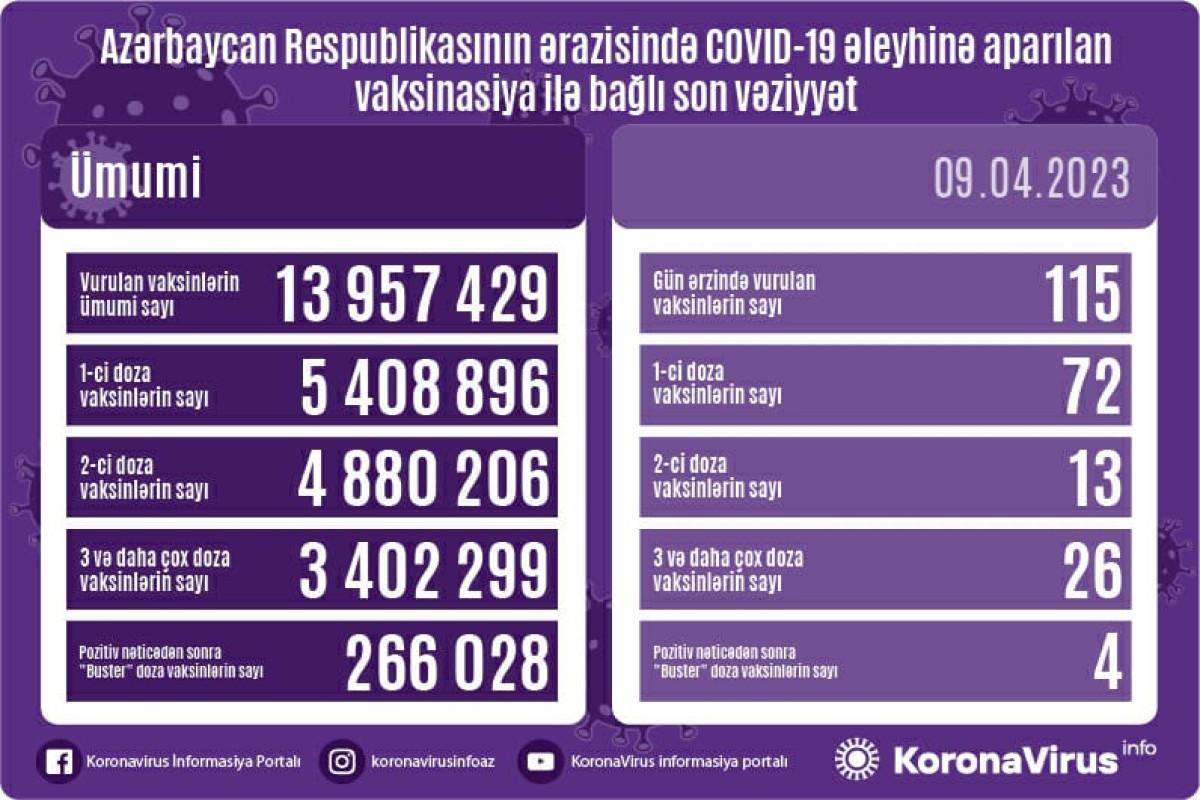 Azərbaycanda son sutkada koronavirus (COVID-19) əleyhinə 115 vaksin vurulub.