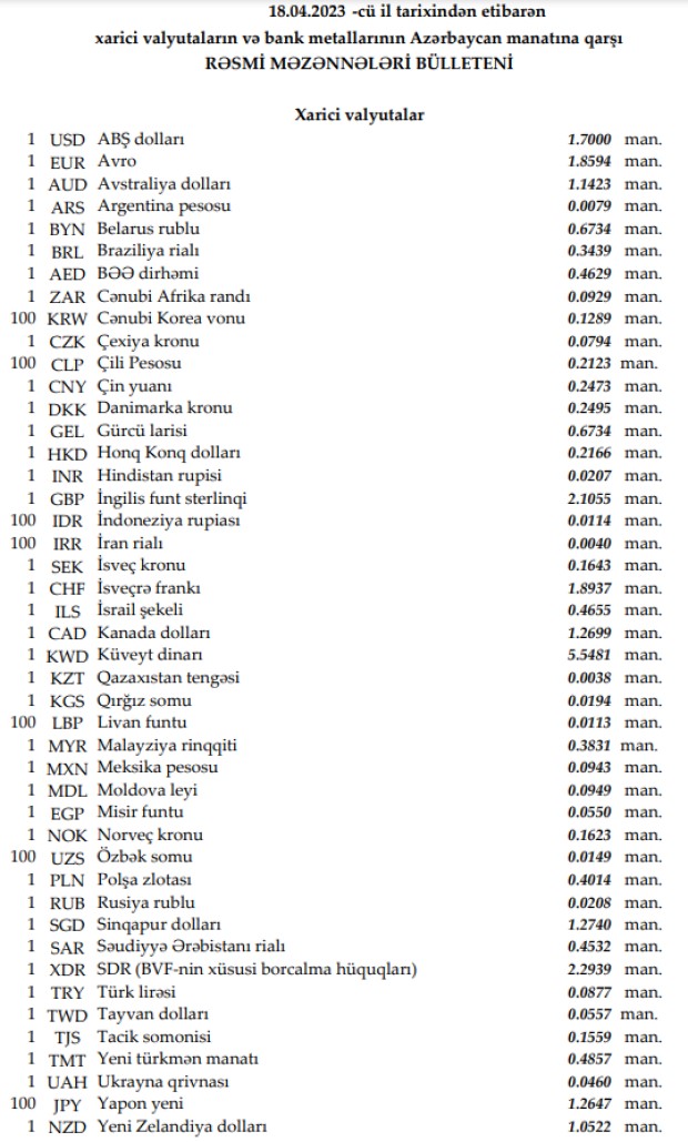 Rəsmi məzənnələr açıqlandı