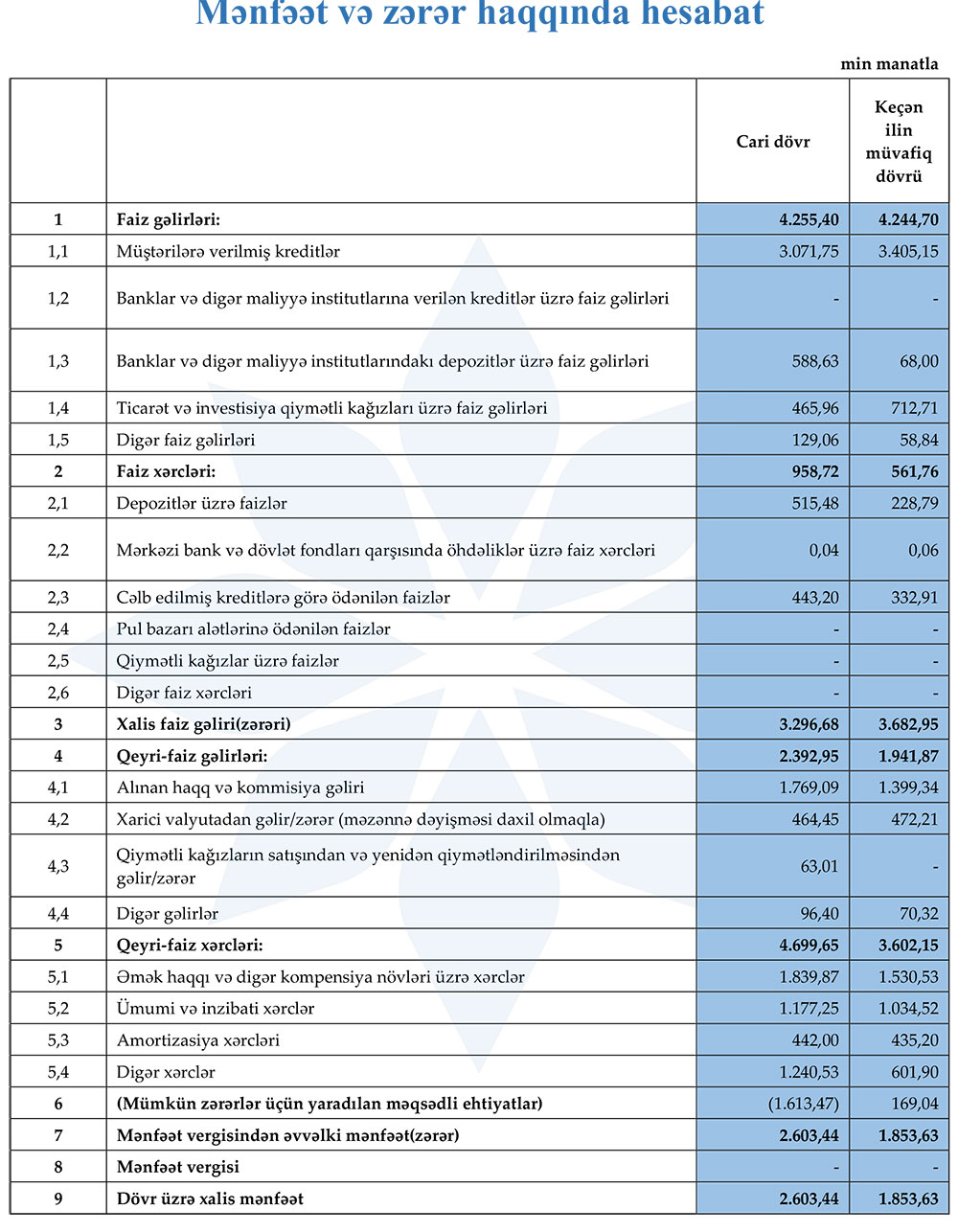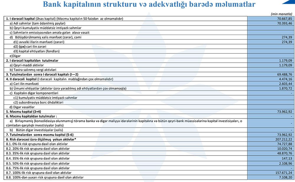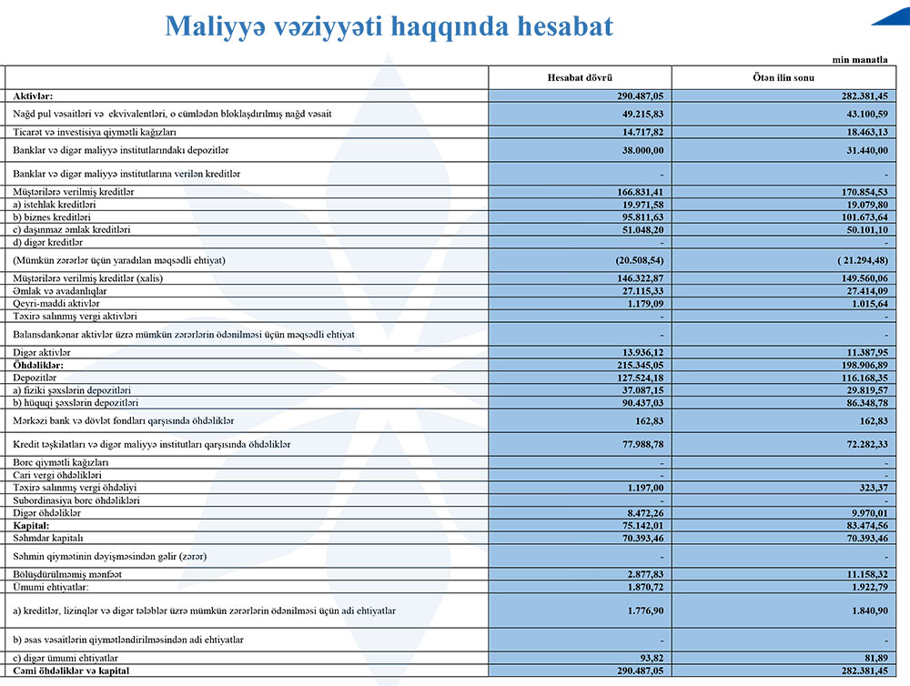 İlk rübdə Bankın depozit portfeli 11 milyon manatdan çox artaraq 127 milyon 524 min manata yüksəlib.