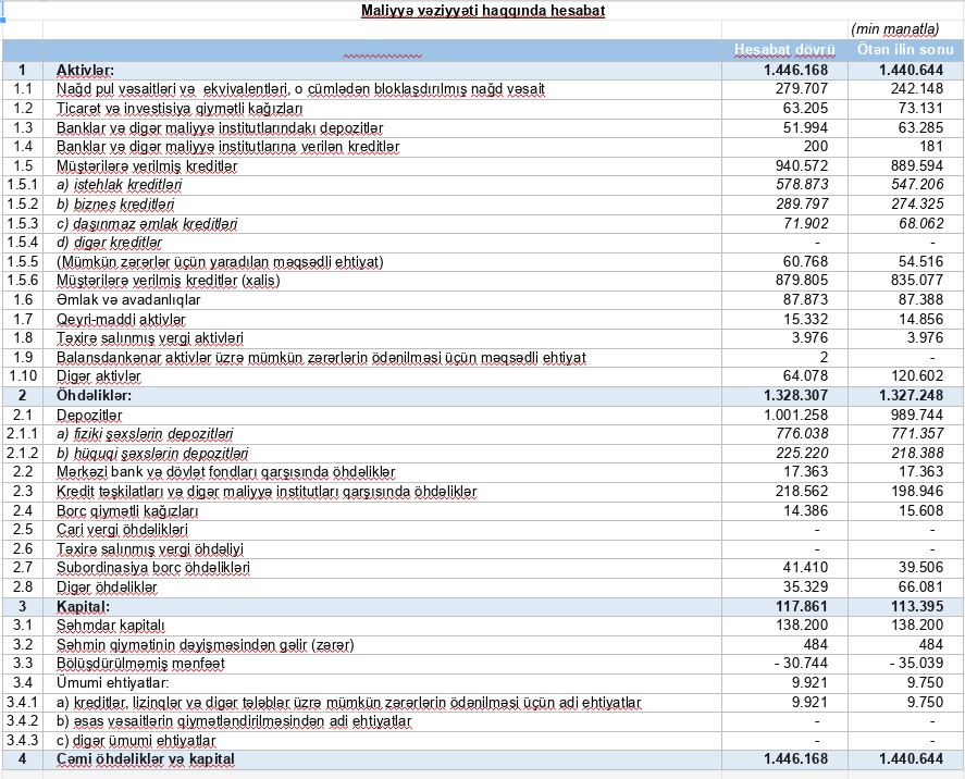 MÜŞTƏRİLƏRƏ VERİLMİŞ KREDİTLƏR ARTIB