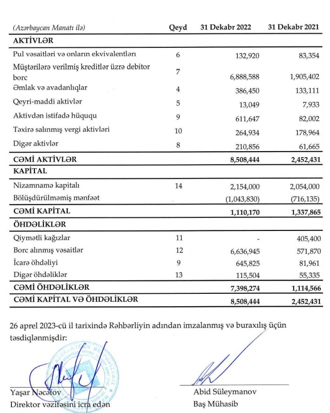 "Azərbaycan Mikro-Kredit Bank Olmayan Kredit Təşkilatı" MMC 2022-ci ili 327 min manat xalis zərər ilə başa vurub. Təşkilat 2021-ci ili 207 min manat xalis zərər ilə bağlamışdı. Beləliklə, ötən il "Azərbaycan Mikro-Kredit"in xalis zərəri 120 min manat və ya 58% artıb. Xalis zərərin artması xərclərin gəlirlərdən daha çox artması ilə bağlıdır. Ötən il BOKT-ın kredit portfeli və gəlirləri kəskin artıb.