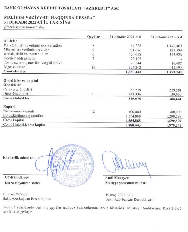 BOKT "Azkredit" ASC 2022-ci ili 1 milyon 320 min manat xalis mənfəət ilə başa vurub. Təşkilat 2021-ci ili 1 milyon 331 min manat xalis mənfəət ilə bağlamışdı.