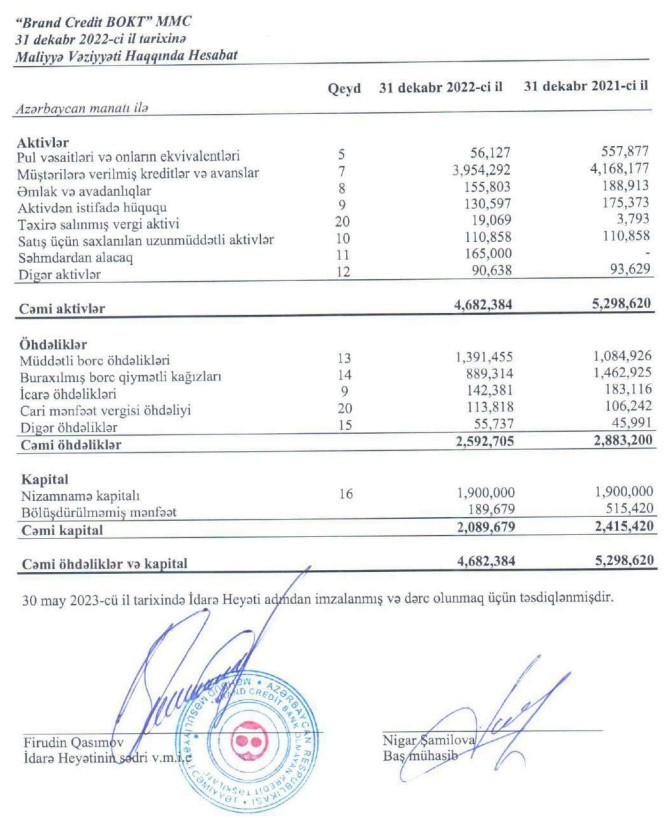 "Brand Credit BOKT" kiçilib, gəlirləri və mənfəəti azalıb