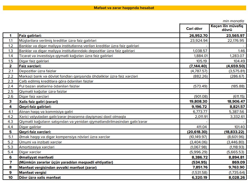 "Expressbank" ASC 2023-cü ilin birinci yarısında mümkün zərərlər üçün yaradılan məqsədli ehtiyatlara 535 min manat ayırıb və 1 milyon 531 min manat mənfəət vergsi ödəyib. Ötən ilin eyni dövründə ehtiyatdan azad olmuş 869 min manat mənfəətə əlavə edilmişdi.