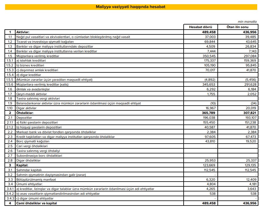 "Expressbank" cəmi aktivləri ötən ilin sonu ilə müqayisədə 12% artaraq 30 iyun 2023-cü il tarixində 489 milyon 458 min manat təşkil edib.