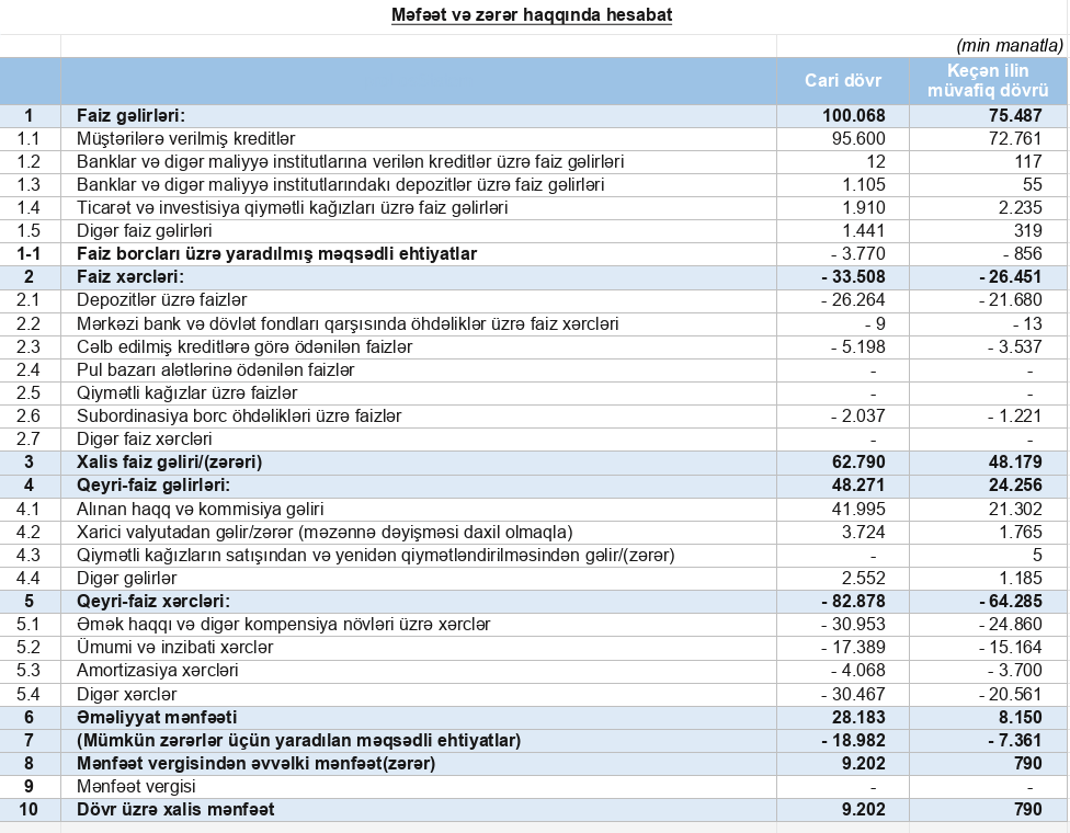 6 AYLIQ FAİZ GƏLİRLƏRİ 100 MİLYON MANATDAN ÇOXDUR