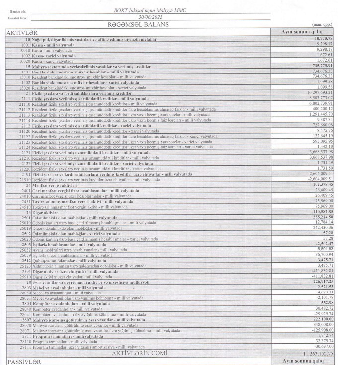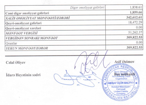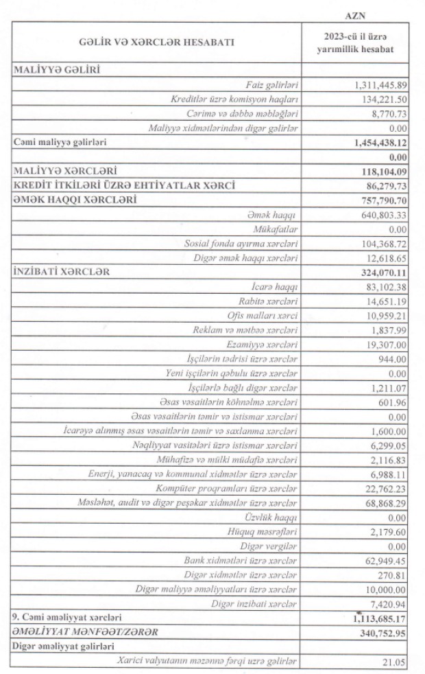 BOKT "İnkişaf üçün Maliyyə" MMC 2023-cü ilin ilk 6 ayını 310 min manat xalis mənfəət ilə başa vurub.