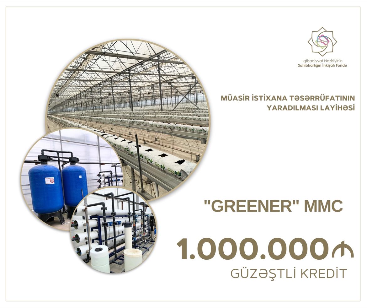 "Greener" MMC müasir istixana təsərrüfatının yaradılması layihəsi üzrə Sahibkarlığın İnkişafı Fondundan 1 milyon manat güzəştli kredit əldə edib.