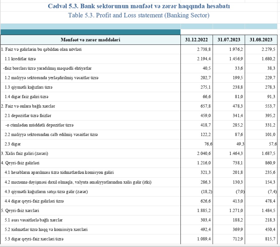 2022-ci ildə banklar kreditlər üzrə 2 milyard 194,4 milyon manat kreditlər üzrə faiz gəliri əldə etmişdilər.