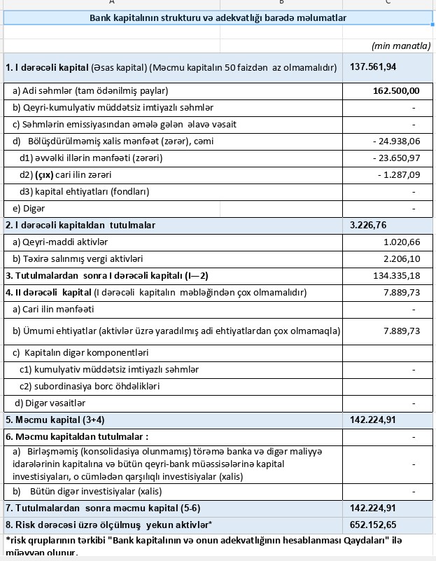 30 sentyabr 2023-cü il tarixində "Muğanbank" ASC 142 milyon 225 min manat məcmu kapitala malik olduğunu bəyan etmişdi. Mərkəzi Bank bu gün bildirib ki, "Muğanbank"ın məcmu kapitalının miqdarı banklar üçün müəyyən edilmiş minimum miqdardan (50 milyon manat) az olub.
