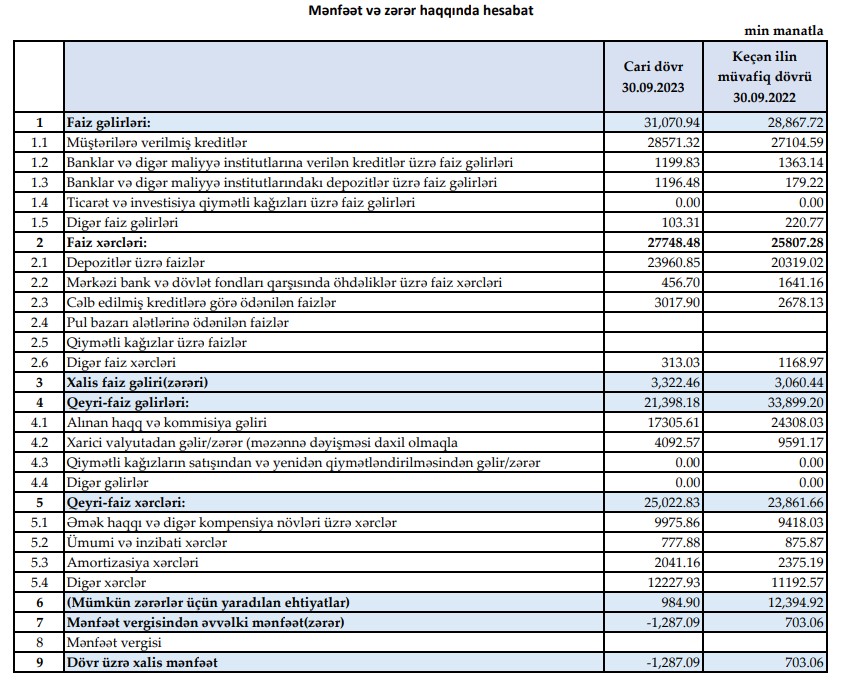 BOKT "Embafinans" kredit itkisilə qarşı-qarşıya- XALİS MƏNFƏƏTİ AZALIB