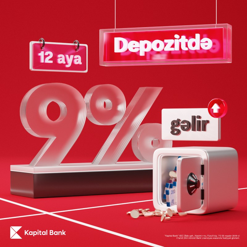 AZN valyutası ilə depozitlərdə yeni kampaniyaya start verilib. 31 yanvar 2024-cü ilədək aktual olacaq kampaniyanın şərtlərinə əsasən müştərilər 12 aylıq 9% gəlir əldə edirlər. Depozit üçün minimum 500 manat olmaqla istənilən qədər məbləği banka əmanət etmək mümkündür. Kapital depoziti ilə yüksək faiz əldə etməklə yanaşı əmanət məbləğini minimum 100 manat məbləğində artırmaq olar. Faizlər aylıq və ya müddətin sonunda təqdim edilir. Sığortalanan məbləğin həcmi isə 100 000 manatdır.