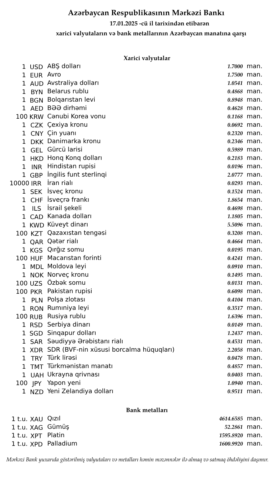 Dolların bazar ertəsi üçün rəsmi məzənnəsi müəyyən olunub