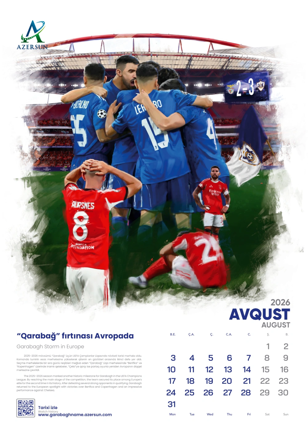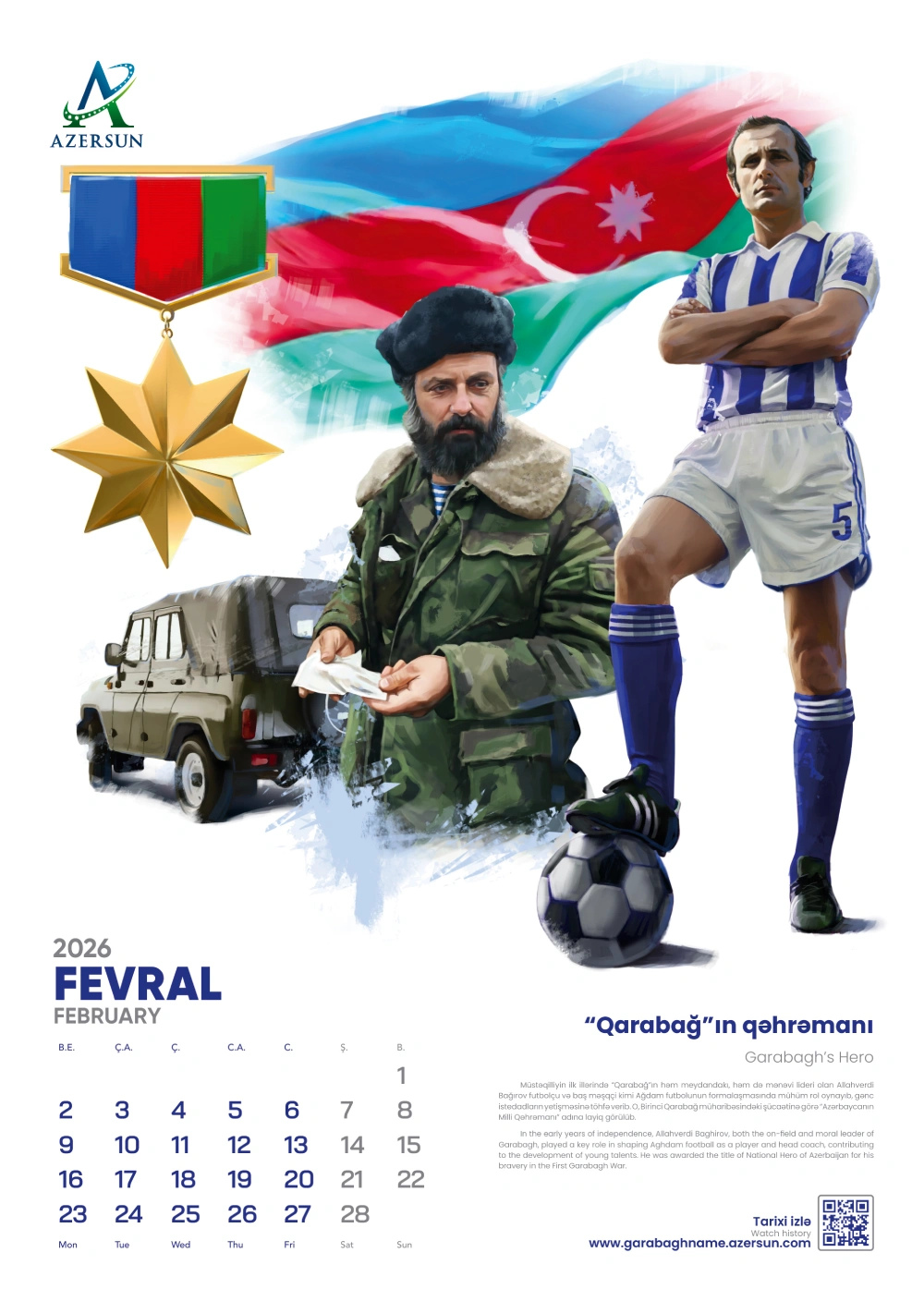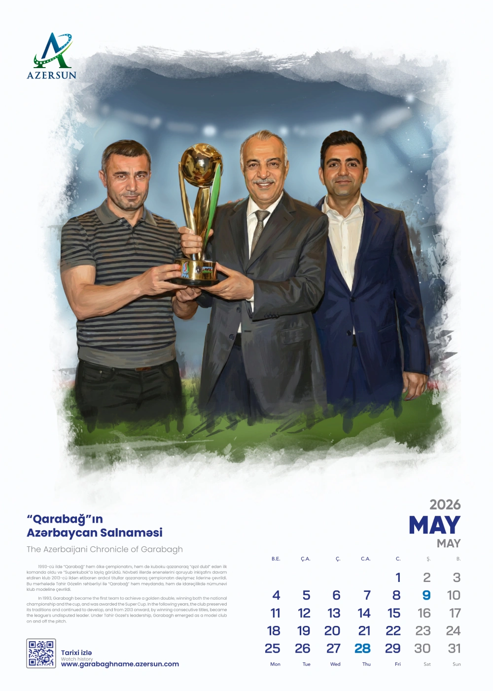 (®) “Azərsun Holdinq” ənənəsinə sadiq qalaraq növbəti illik təqvimini çap etdirib. 2026-cı il üçün hazırlanan bu təqvim son illərdə futbol sahəsində qızıl dövrünü yaşayan “Qarabağ” futbol klubuna həsr olunub.