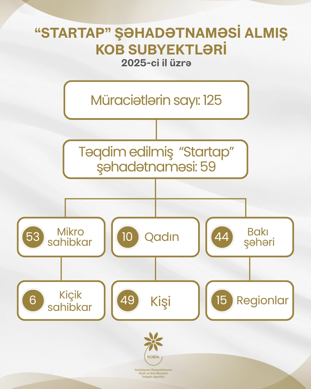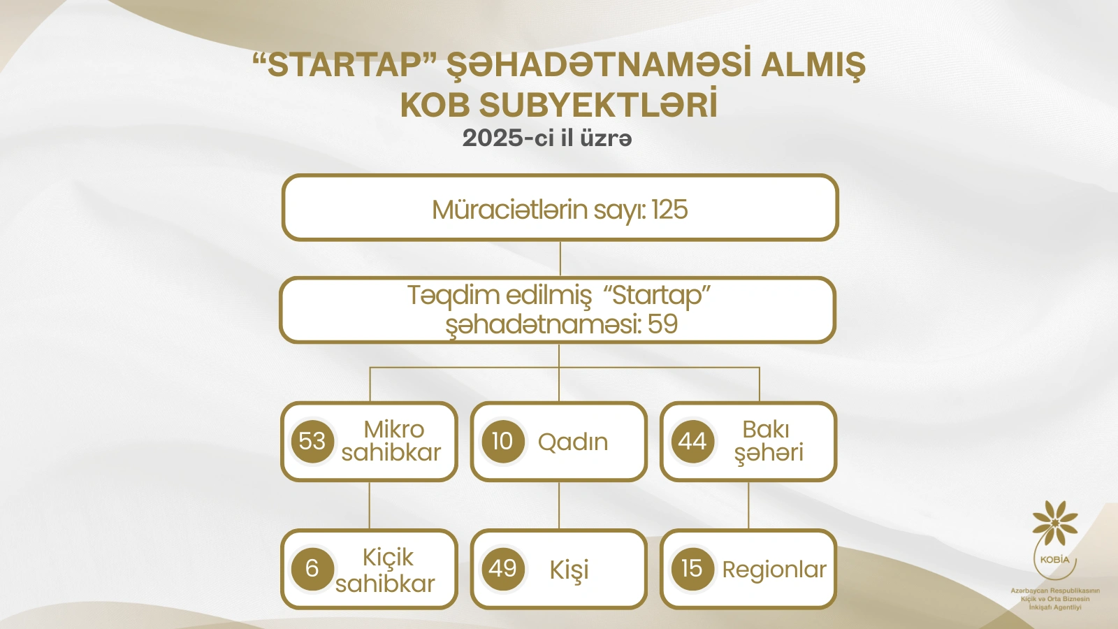 2025-ci ildə 125 mikro və kiçik sahibkarlıq subyekti “Startap” şəhadətnaməsi almaq üçün Kiçik və Orta Biznesin İnkişafı Agentliyinə (KOBİA) müraciət edib.