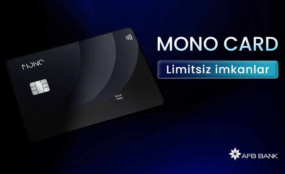 AFB Bank Mono kart AFB Bank AFB Bank Mono kart Sadə Mono kart Premium Mono kart AFB Bank yeni kart məhsulu Mono kart faiz gəliri 8 faiz kart gəliri 2.5 faiz dollar kart gəliri AFB Bank kart şərtləri Mono kart keşbek Apple Pay keşbek Google Pay keşbek AFB Bank kart kampaniyası komissiyasız mədaxil kart komissiyasız nağdlaşdırma limiti AFB Bank bankomat limiti card to card köçürmə limiti AFB Bank kart üstünlükləri Azərbaycanda bank kartları Mono kart istifadə müddəti 36 ay kart müddəti AFB Bank pərakəndə bankçılıq Mono kart cashback limiti Azərbaycanda keşbek kartları