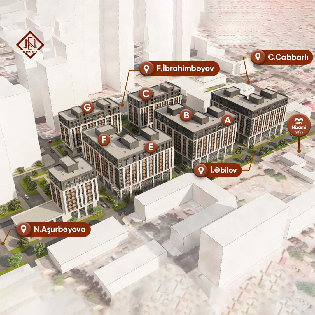 "NİZAMİ CİTY" şəhərin mərkəzi hissəsi, Nizami m/st, biznes və tibb mərkəzləri, təhsil ocaqları , ticarət mərkəzləri, Qış parkı və Mərkəzi parka yaxın ərazidə müasir dizaynla inşa olunan yaşayış kompleksidir. 9 mərtəbə və 9 binadan ibarət kompleksin ilkin mərhələdəki 3 binası (A,B,C) istifadəyə verilib, növbəti mərhələ olan E,F və G binalarının inşası davam edir.
