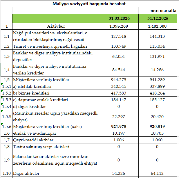 Bank 2025-ci ilin ilk rübünü 4 milyon 657 min manat xalis mənfəət ilə bağlamışdı.