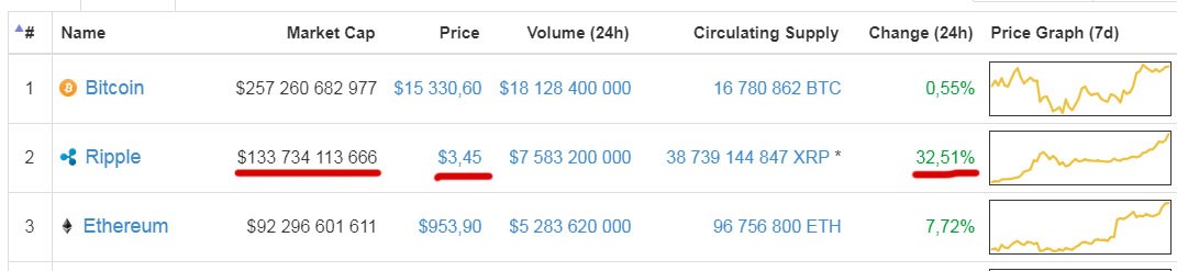 Dünən səhər Ripple-ların cəmi bazar dəyəri 108 milyard dolları aşmış, birinin qiyməti 2.80 dollara qalxmışdı. Ripple, Ötən ilin yanvarında 0,006 dollar, Dekabrın əvvəlində isə yalnız 25 sent səviyyəsində idi.