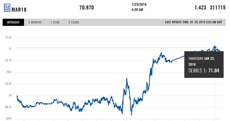 Bu növ neftin qiyməti sonuncu dəfə 2014-cü ilin 3 dekabr tarixində 71 dollardan yuxarı olub.