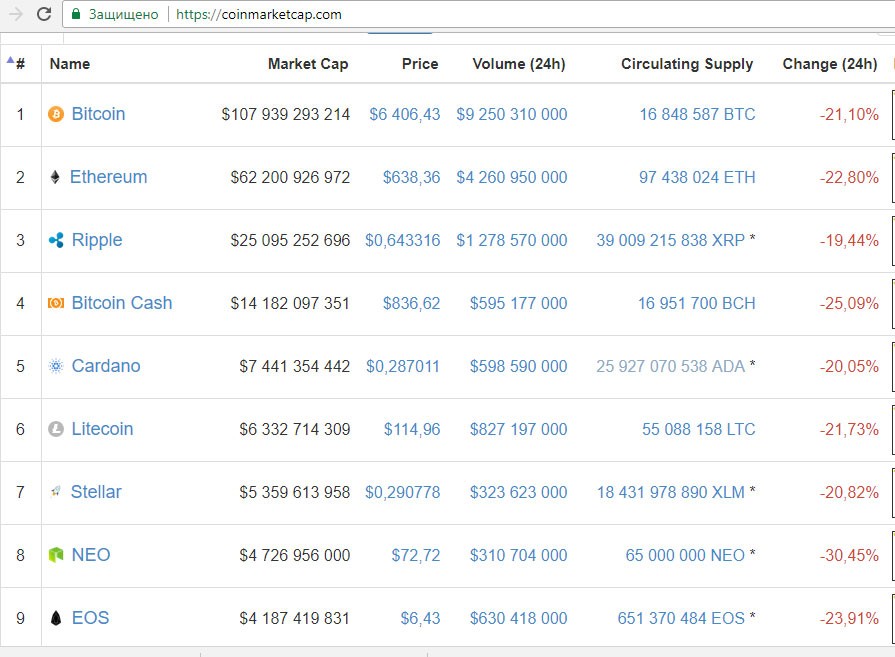 Bitcoin-in qiyməti 6 min 300 dollardan da aşağı düşdü