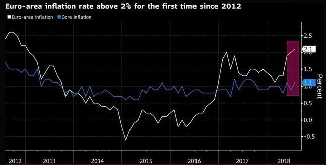 Regionda inflyasiya 2012-ci ildən bu yana ilk dəfə 2%-i aşaraq Avropa Mərkəzi Bankının (AMB) İyul ayında qoyduğu hədəfin üzərinə çıxıb.