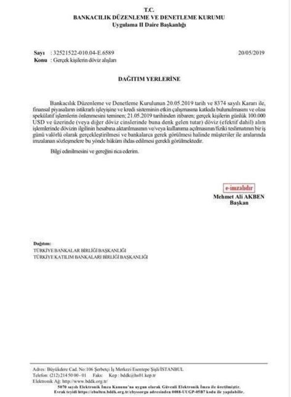 Türkiyədə Bank bazarını tənzimləyən təşkilat (BDDK), bankların valyuta alışı və satışı əməliyyatlarına yeni qayda tətbiq edir.