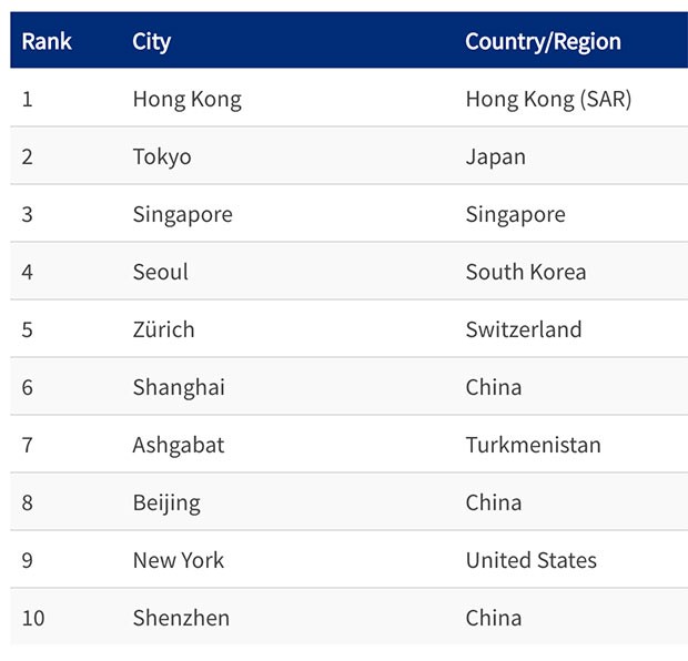 Honq Konq sonra Tokio, Sinqapur, Seul və Sürix ən bahalı şəhərlərdir.