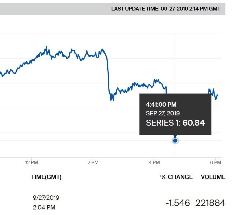 Səudiyyə Ərəbistanının enerji infrastrukturuna qarşı 14 Sentyabrdakı dron hücumlarının ardından neft qiymətləri kəskin yüksəlmişdi. Sonradan Səudiyyə Ərəbistanı neft hasilatını bərpa etdikcə neft qiymətləri düşürdü.