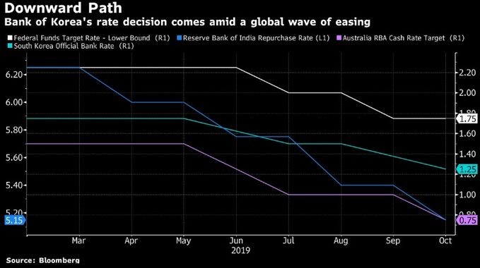 Cənubi Koreya Mərkəzi Bankı qlobal iqtisadi yavaşlamanın inflyasiyaya və ixraca təzyiq yaratması ilə əlaqədar olaraq bu il ikinci dəfə faiz endiriminə gedib.