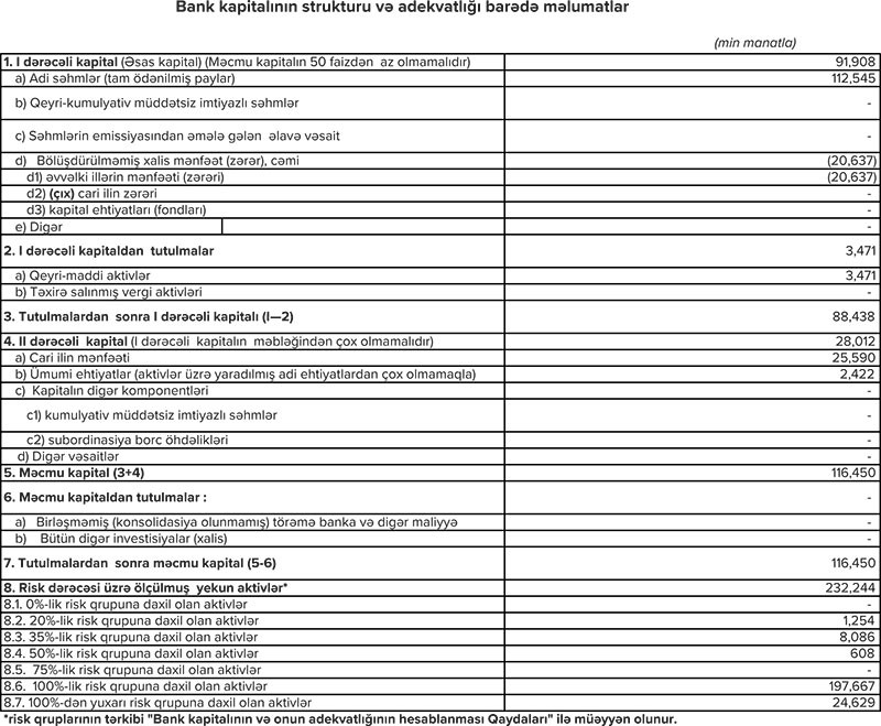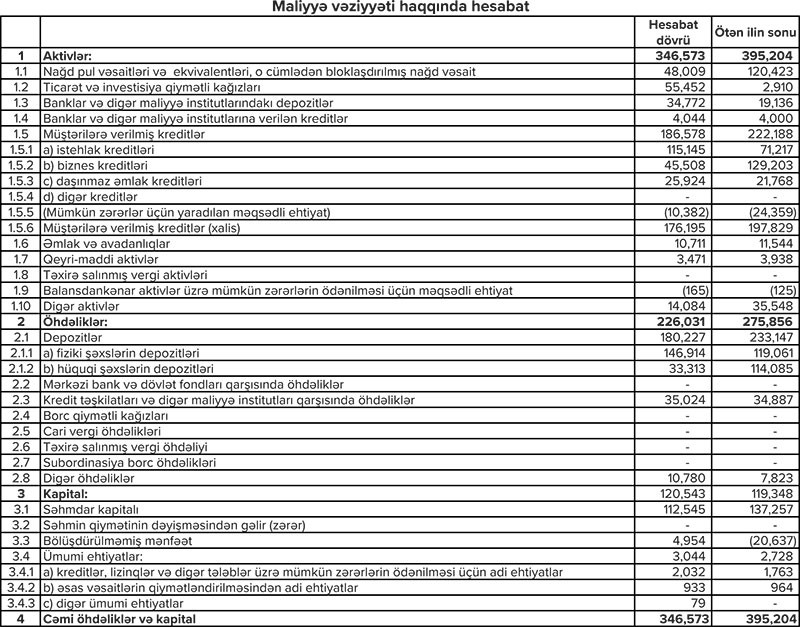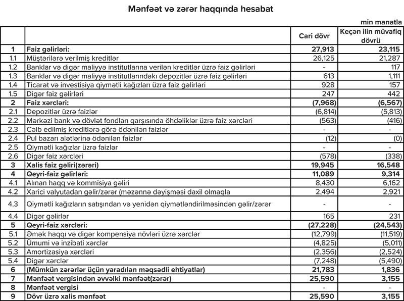 Eyni zamanda mümkün zərərlər üçün yaradılmış ehtiyatın 21 milyon 783 min manatının azad olması hesabına mənfəət 25 milyon 590 min manata yüksəlib. Ötən ilin eyni dövründə ehtiyatın 1 milyon 836 min manatı azad olduğundan xalis mənfəət 3 milyon 155 min manat təşkil etmişdi.