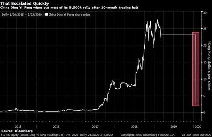 Honq Konqda ticarət olunan Çinin sərmayə şirkəti "China Ding Yi Feng"in səhmləri bir gündə 93% dəyərdən düşüb.