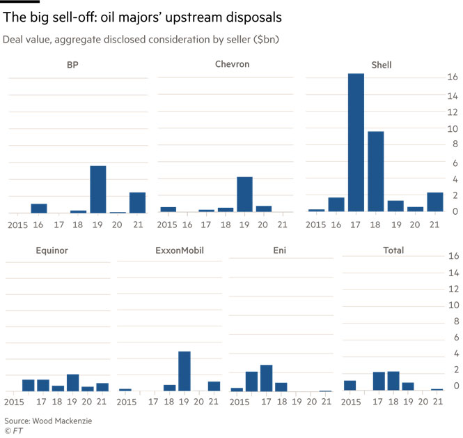 ABŞ-ın ExxonMobil və Chevron, Avropanın isə BP, Royal Dutch Shell, Total və Eni kimi nəhəngləri təkcə 2018-ci ildən bəri 28 milyard dollardan çox pay satıb. Növbəti illərdə isə əlavə 30 milyardlıq paylarını satmağı planlaşdırırlar.