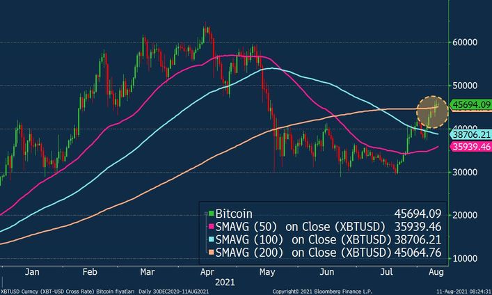 Bitcoin, son iki günü 200 günlük orta qiymətinin üzərində bağlamağı bacarıb, bu gün də üzərində bağlaması halında bu səviyyədən dəstək taparaq yüksəlişini davam etdirə bilər.