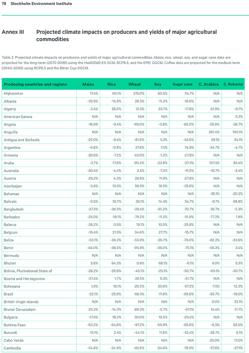 Hesabat ABŞ, Rusiya, Çin və Braziliya kimi iri dövlətlərin iqlim dəyişikliyinə əsas təsir göstərən iqtisadiyyatlar olduğunu vurğulayır. Qlobal temperaturun getdikcə yüksəlməsi orta-uzun müddətli perspektivdə ərzaq balansındakı əsas məhsullara aşağıdakı kimi təsir edəcək: