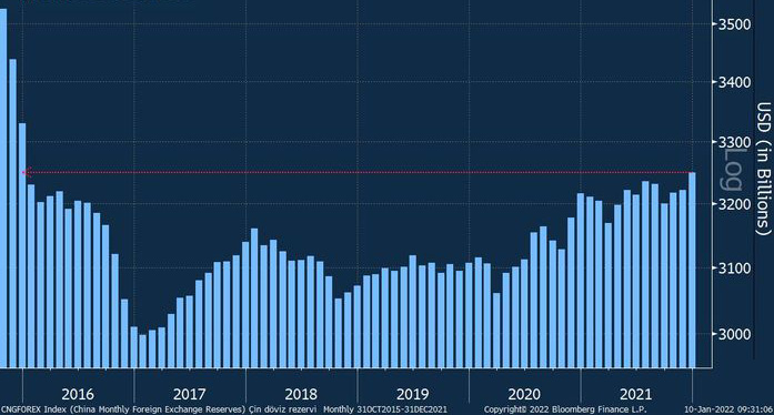 Çinin valyuta ehtiyatları dekabrda 3,25 trilyon dollar olmaqla son 6 ilin ən yüksək səviyyəsinə çatıb.
