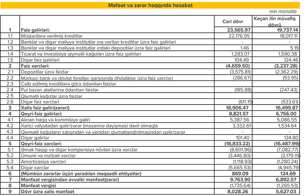 Bu bank çox yaxşı işləyib, xalis mənfəəti kəskin artıb