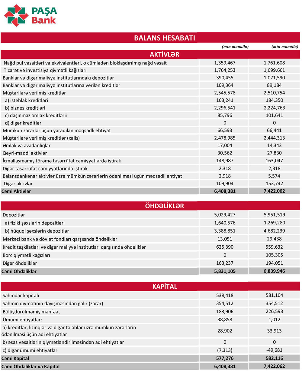“PAŞA Bank” digər banklardakı depozitlərini 2,7 dəfə artırıb - 1,1 MİLYARD MANATA YAXINLAŞIB