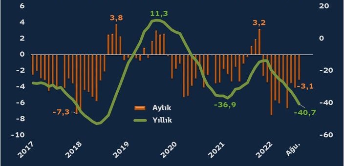 TCMB məlumatlarına görə, illik cari kəsir 40,9 milyard dollar təşkil edib. Beləliklə, illik cari kəsir avqust ayında 2018-ci ildən bəri ən yüksək həddə çatıb.